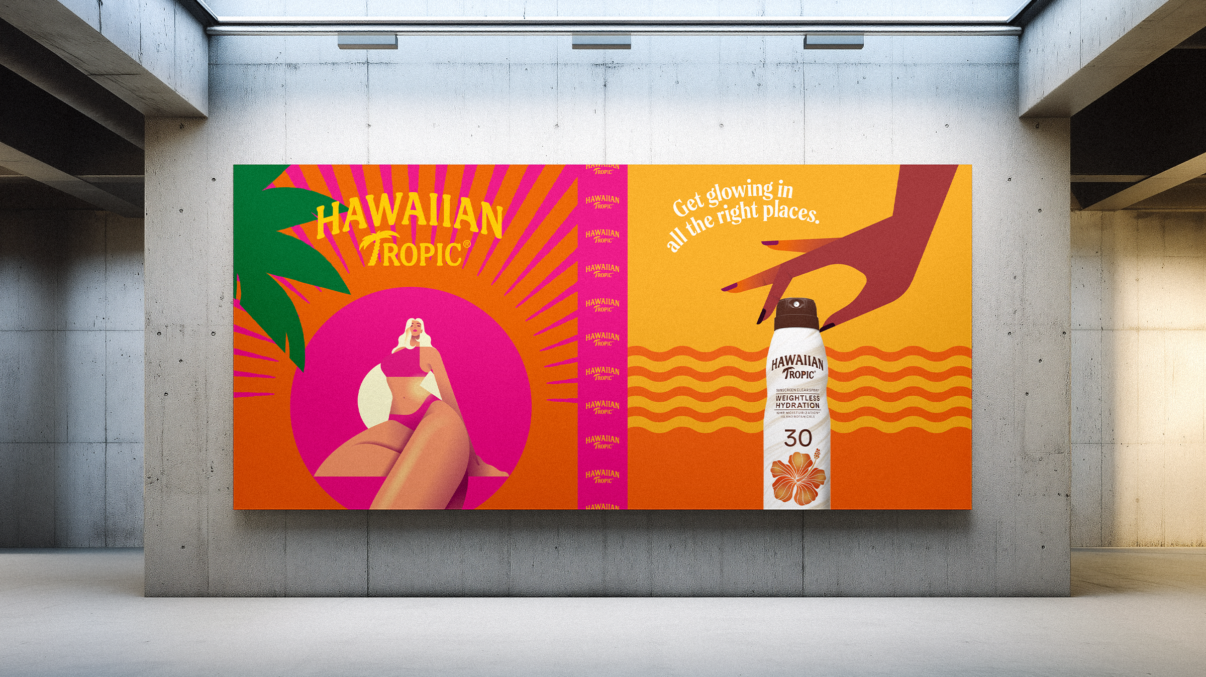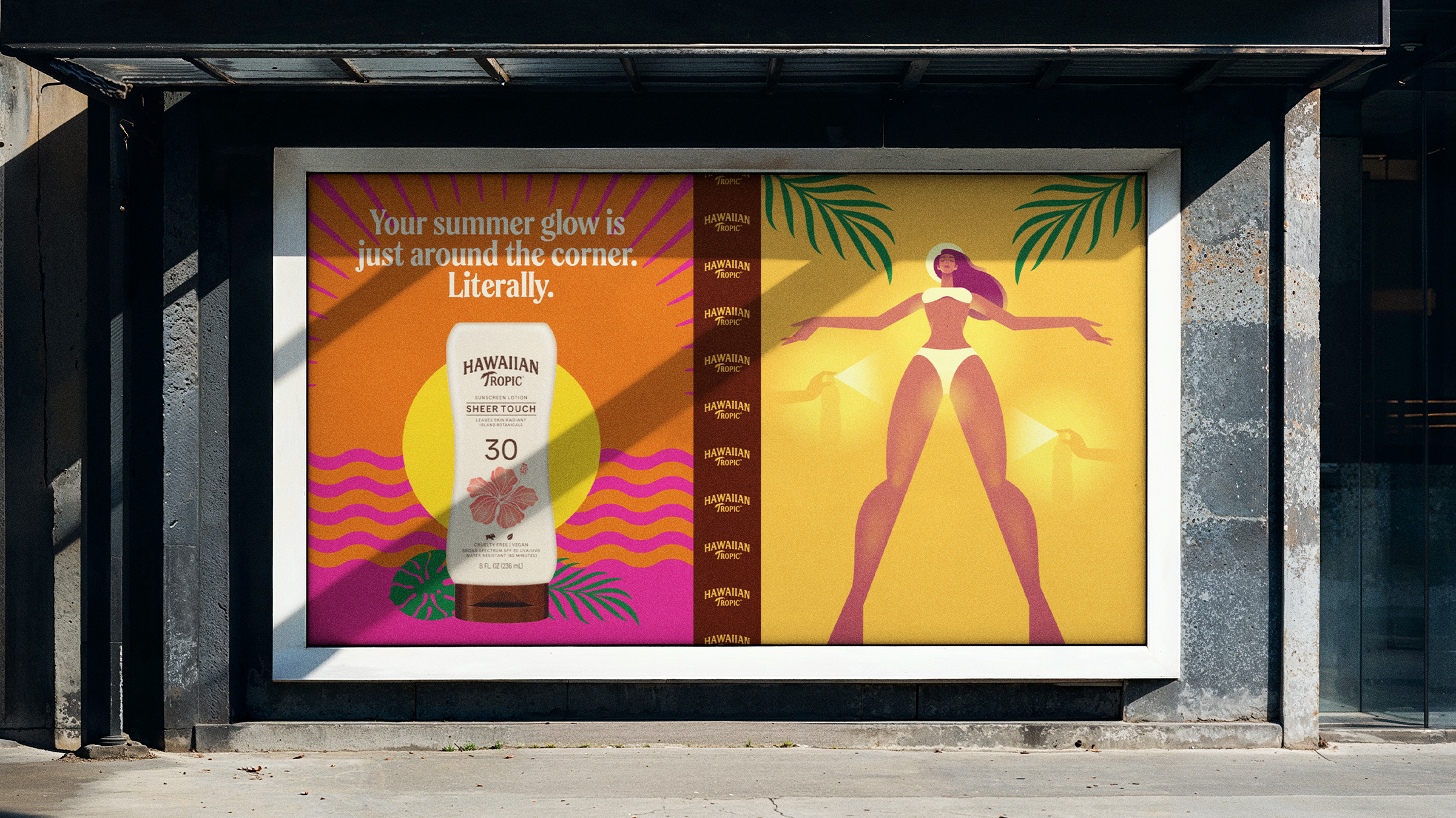 Placed around the corner from stores that sell Hawaiian Tropic sunscreen